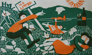 "Say something, Edith." This catchphrase in my wife's family, spoken whenever anyone is feeling too tired or bored to amuse themselves, took my fancy long before I knew anything about the man who coined it, Claude Flight, or the wonderful group of linocut artists he inspired, the Grosvenor School. The Grosvenor School artists include Cyril Power, Sybil Andrews, Eileen Mayo, Lill Tschudi, Ethel Spowers, Dorrit Black, and Eveline Symes, as well as Claude Flight himself, and his life-partner Edith Lawrence. Flight founded the Grosvenor School of Modern Art with Iain MacNab, Cyril Power and Sybil Andrews, and taught there from 1926-1930. After that, he taught informally at summer schools in his neolithic chalk cave at Chantemesle on the banks of the Seine, which he had bought while serving in France in WWI. The Grosvenor School of Modern Art was located in London, at 33, Warwick Square.