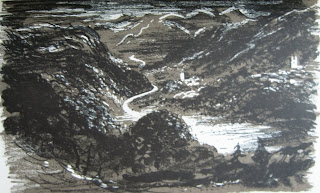 Taken together, these three works by Bawden, Piper, and Sutherland show young British artists of the day exploring the central issues of the international art of their day. But beneath the surface, something different was stirring. Graham Sutherland had in fact already created the work which would divert British Modernism from the track it was on, and send it into the sidings of Neo-Romanticism. That work was an extraordinary, brooding etching with aquatint, created in 1936 and published in Signature 9 in July 1938. It is entitled Clegyr-Boia, and depicts a Welsh landscape. It was this work, with its obvious debt to Samuel Palmer and Edward Calvert, and its anxious overtones of threat and destruction, that set the template for the entire Neo-Romantic movement. That an etching published in a little magazine with a very limited circulation should have such a seismic impact is not as unusual as it may seem. Signature sold just shy of 500 copies, but every one of those went to an art school, or an artist, or a specialist printer or typographer. Art students couldn't afford it, but it was eagerly read in art school libraries or in art bookshops such as Zwemmer's.