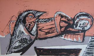 Further to my post on Edward Bawden, here are some more thoughts about why British art took the direction it did in the mid-twentieth century. Bawden’s untitled abstract copper engraving, featured in the last two posts, was published in issue six of the Curwen Press “quadrimestrial of typography and graphic arts”, Signature, in July 1937. The same issue also had a highly-experimental abstract colour lithograph by John Piper, and an almost surreal colour lithograph of fish underwater by Graham Sutherland. The Piper and Sutherland works were used for the front and back covers of Stephen Laird’s catalogue for the exhibition Twentieth Century British Lithographs: From Pastoral to Pop Art at Keynes College, University of Kent in 2009.