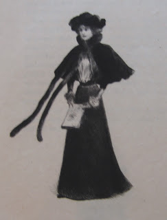 My last set of drypoints by Henry Somm was made in 1897 for La Parisienne peinte par elle-même by Georges Montorgueil. Here all the background of street or interior which we find in the earlier work has been stripped away, so that only the woman exists. These exquisite Parisiennes seem unreachably lost in their own interior worlds—not so much offered up to the male gaze as glimpsed through a portal into some other dimension. Where the model is aware of our gaze, she returns it with a sense of amused impatience, eager to be set free once more to her own thoughts and purposes.