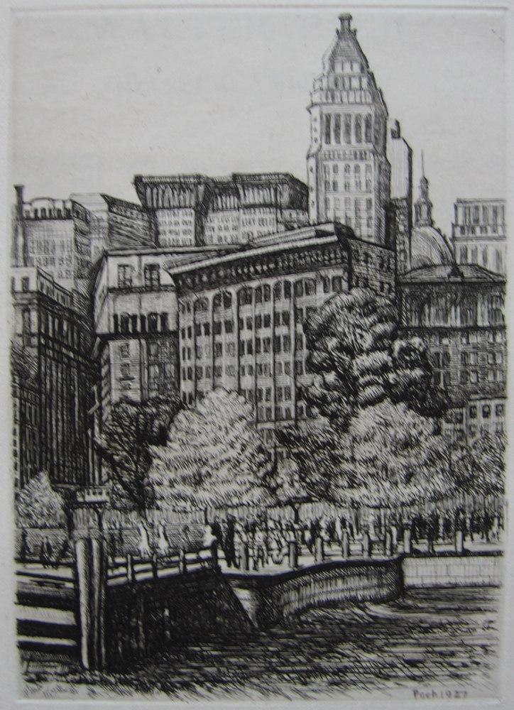My prints by Jean-Émile Laboureur include etchings, copper engravings, and wood engravings, made between 1907 and 1928. The earliest, an etched view of Broadway in New York, published by the Gazette des Beaux-Arts, is one of the products of Laboureur's early years in the United States, where he taught at the Art Student's League in New York, and made some striking etchings of both New York and Pittsburgh. In the period 1899-1911 Laboureur lived in Dresden, the USA, Canada, London, Italy, Greece, and Turkey, before returning definitively to Paris.