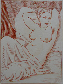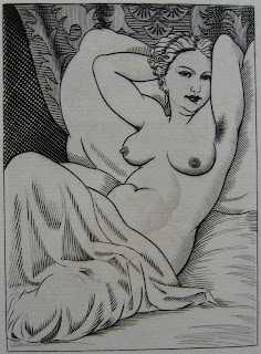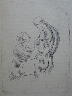 My sole engraving by Stefan Mrozewski (1894-1975) is also a religious subject (the entombment of Christ); Mrozewski's most important work is considered his series of 101 large engravings for Dante's Divine Comedy, on which he laboured for 32 years. Stefan Mrozewski was born in Czestochowa, Poland, in 1894. Although he showed early talent as an artist, his modest family circumstances initially prevented him from studying art. In 1920 he served in a cartographic unit in the Polish-Soviet war. Afterwards, he attended several art schools, notably studying wood engraving and etching under Wladislaw Skoczylas at the Applied Art School in Warsaw. From 1925-32 Stefan Mrozewski lived in Paris, where he exhibited at various Salons and at the Galerie Bonaparte. His reputation in Paris was such that Pierre Mornand devoted a chapter to his work in Vingt-deux artistes du livre. From 1933-35 Mrozewski lived in Amsterdam, and from 1935-37 in London. He returned to Poland only to find his homeland invaded by the Nazis; Stefan Mrozewski was active in the Polish Resistance, putting his graphic skills to good use. After Poland was swallowed up by the Soviet Union in 1945, Mrozewski made his escape, first to familiar France and Holland, and then in 1951 to the USA, where he lived and worked until his death in Walnut Creek, California, in 1975.