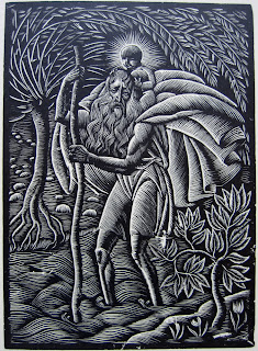 Although many of the artists discussed so far drew on folk art, they did so from an educated perspective. My last Polish wood engraver was a true outsider artist. The sculptor and printmaker Jedrzej Wowro (sometimes spelled Vowro) was born in Gorzeniu Dolnym in 1864. Jerdzej Wowro was an entirely self-taught folk artist. Born into a humble farming family, he remained illiterate. Jedrzej Wowro worked in coal mines, mills, and as a lumberjack. It was after being buried in a mine collapse that he returned to Gorzeniu and married Mary Guzek, who was literate, and who introduced him to stories of the saints who appear in much of his work. In 1923 his second wife Marianna Pin took some of his sculptures to the local manor house and showed them to the writer and champion of expressionism Emil Zegadlowicz. From that moment, Zegadlowicz became Jedrzej Wowro's patron, encouraging others to buy his work, and commissioning 20 woodcuts between 1925 and 1933. After that Wowro, now internationally known, was too ill to work. He died at the age of 73 in 1937.